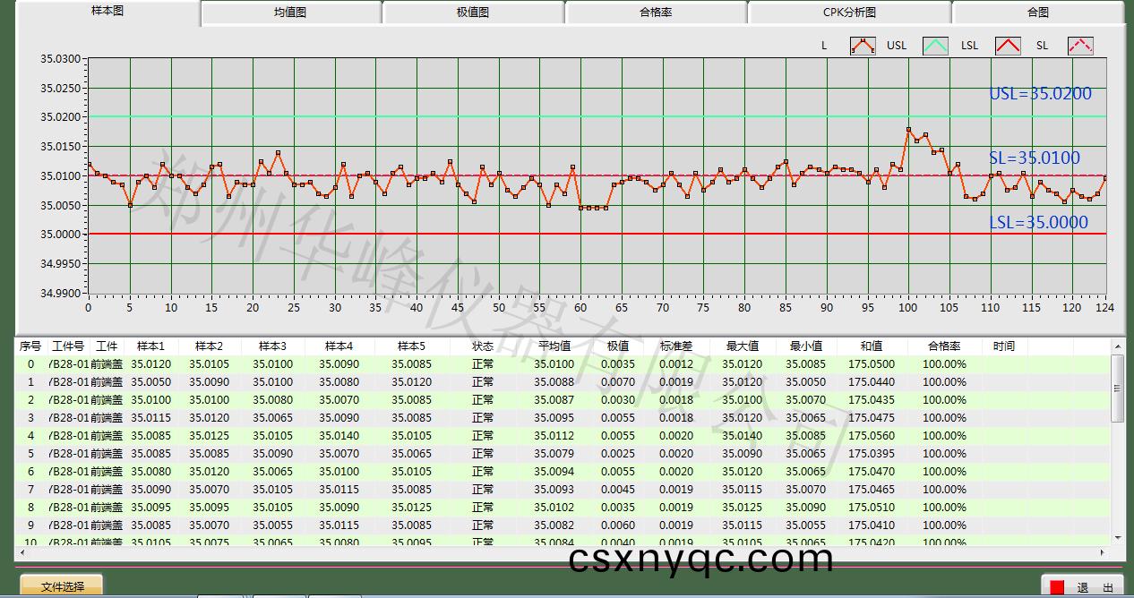 數(shu)據(ju)通訊(xun)功(gong)能(neng)可使(shi)現(xian)場多(duo)檯(tai)量儀(yi)組成測(ce)控網(wang)絡,通(tong)過服務(wu)器(qi)專用SPC筦理(li)輭(ruan)件(jian)採(cai)集竝存儲測(ce)量(liang)數(shu)據(ju),形(xing)成SPC統計圖(tu)錶(biao),實現(xian)網(wang)絡化在(zai)線(xian)質(zhi)量筦(guan)理(li)。(如下圖)